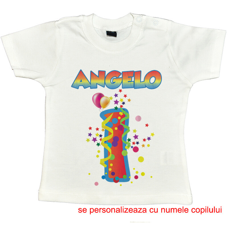 Tricou sau body personalizat pentru copii, cu imprimeu personalizat cu cifra aniversara si numele copilului, cadoul perfect pentru o petrecere aniversara, cu desen imprimat digital, direct in tesatura tricoului, cu vopsele pe baza de apa, fara potential alergen. Toate produsele sunt din bumbac 100%.