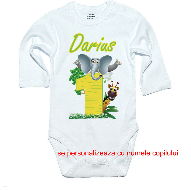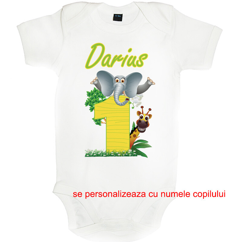 Tricou sau body personalizat pentru copii, cu imprimeu jungle,cadoul perfect pentru o petrecere aniversara, cu desen imprimat digital, direct in tesatura tricoului, cu vopsele pe baza de apa, fara potential alergen. Toate produsele sunt din bumbac 100%.