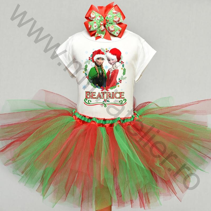 Compleu body si fustita tutu cadoul perfect pentru Craciun cu body din bumbac 100% imprimat cu printesele elsa si ana in tema Craciunului si un tutu foarte fluffy in culori asortate.