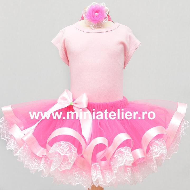 Fustita tutu este pe elastic, din tul foarte moale, de calitate superioara, ales special ca sa nu incomodeze fetita in nici un fel. Talia este elastica si acoperita cu satin si lungimea este in general calculata acopere jumatate din pulpa piciorului, in asa fel incat, in momentul in care se umfla din cauza miscarii, sa fie o fustita mini Fustitele sunt accesorizate cu benzi colorate, tematice