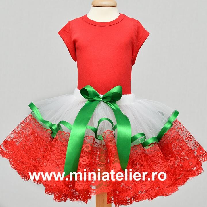 Fustita tutu este pe elastic, din tul foarte moale, de calitate superioara, ales special ca sa nu incomodeze fetita in nici un fel. Talia este elastica si acoperita cu satin si lungimea este in general calculata acopere jumatate din pulpa piciorului, in asa fel incat, in momentul in care se umfla din cauza miscarii, sa fie o fustita mini Fustitele sunt accesorizate cu benzi colorate, tematice