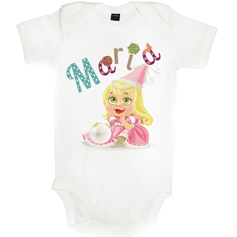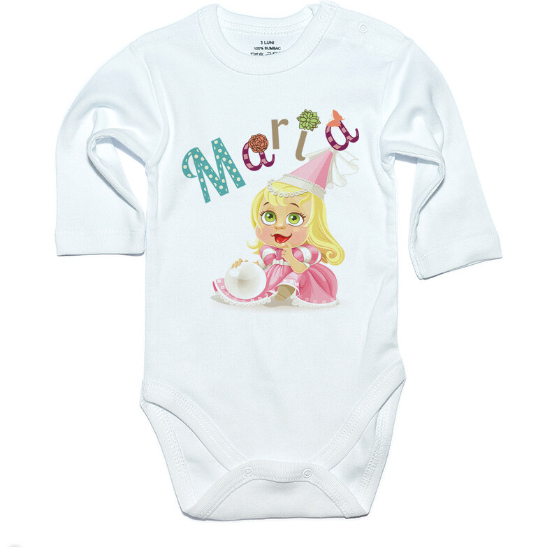 Tricou sau body personalizat pentru copii, cu imprimeu persoanlizat cu numele fetitei,cadoul perfect pentru o petrecere aniversara, cu desen imprimat digital, direct in tesatura tricoului, cu vopsele pe baza de apa, fara potential alergen. Toate produsele sunt din bumbac 100%.