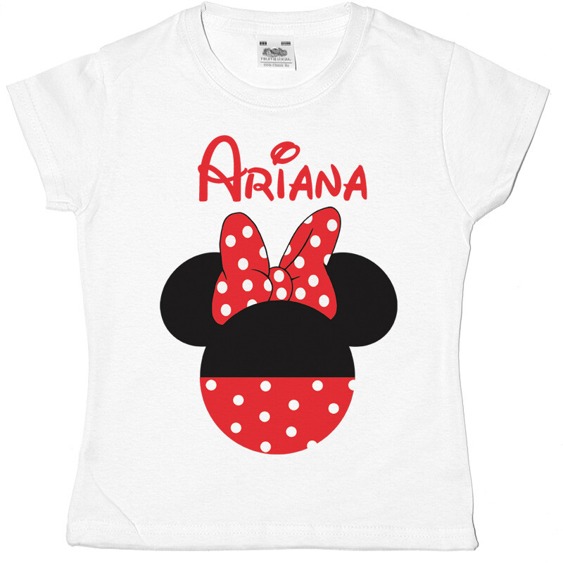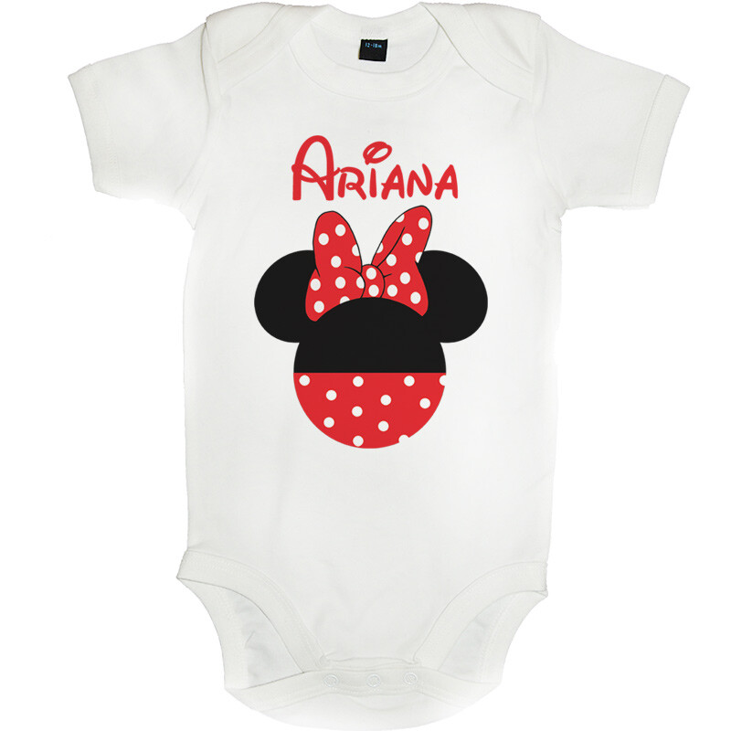 Tricou sau body personalizat pentru copii, cu imprimeu cu Minnie Mouse, cadoul perfect pentru o petrecere aniversara, cu desen imprimat digital, direct in tesatura tricoului, cu vopsele pe baza de apa, fara potential alergen. Toate produsele sunt din bumbac 100%.