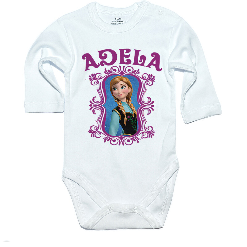 Tricou sau body personalizat pentru copii, cu imprimeu Frozen ,cadoul perfect pentru o petrecere aniversara, cu desen imprimat digital, direct in tesatura tricoului, cu vopsele pe baza de apa, fara potential alergen. Toate produsele sunt din bumbac 100%.
