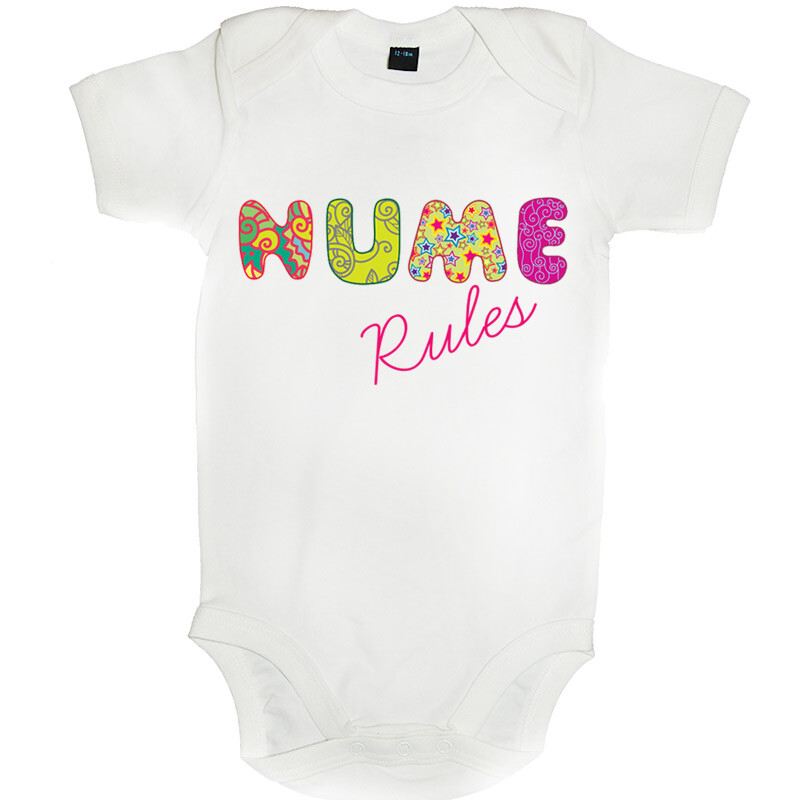 Tricou sau body personalizat pentru copii, cu imprimeu personalizat cu numele copilului, cadoul perfect pentru o petrecere aniversara, cu desen imprimat digital, direct in tesatura tricoului, cu vopsele pe baza de apa, fara potential alergen. Toate produsele sunt din bumbac 100%.