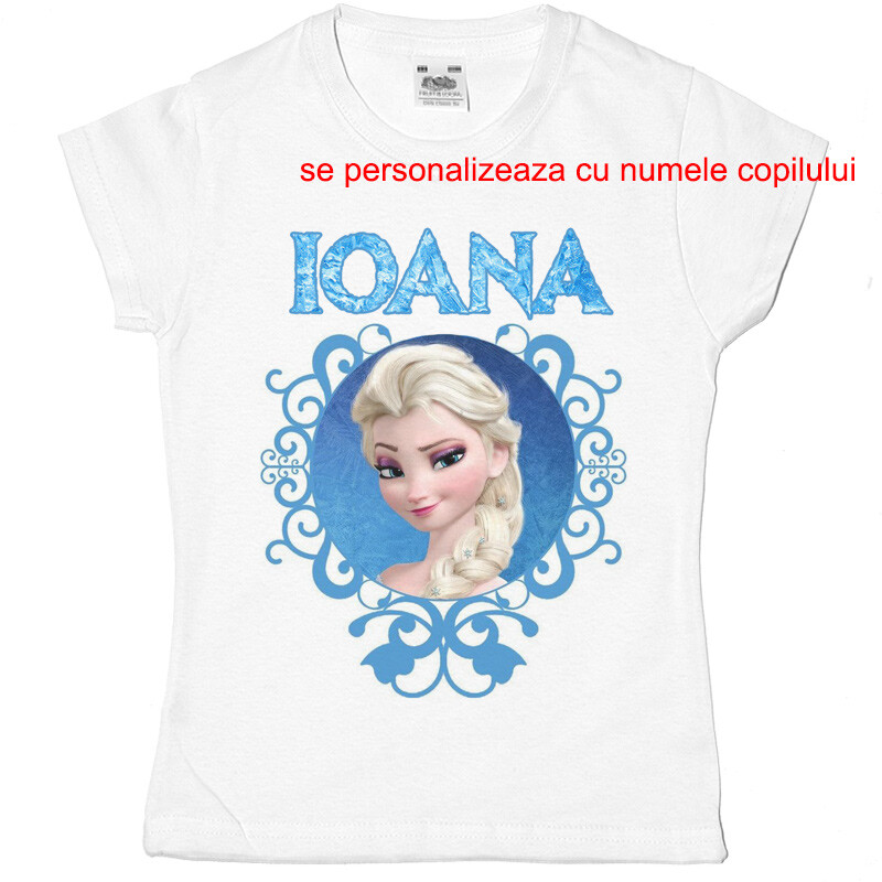 Tricou sau body personalizat pentru copii, cu imprimeu cu printesa de gheata, cadoul perfect pentru o petrecere aniversara, cu desen imprimat digital, direct in tesatura tricoului, cu vopsele pe baza de apa, fara potential alergen. Toate produsele sunt din bumbac 100%.