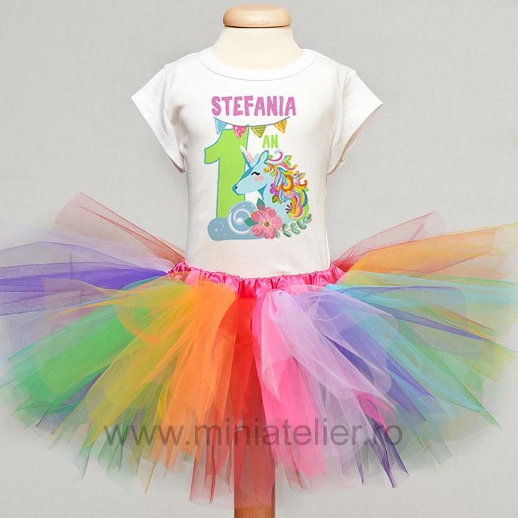 Set format din body sau tricou pentru fetite, cifra corespunzatoare aniversarii si numele fetitei.