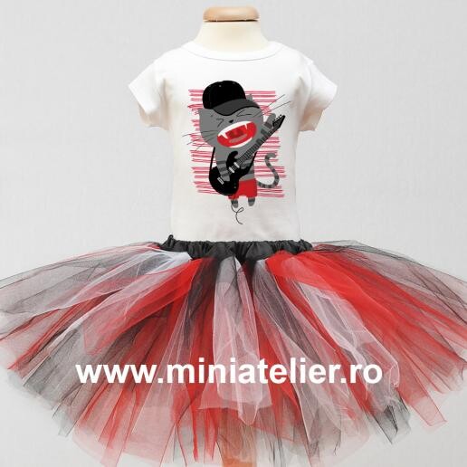 Fustita tutu este pe elastic, din tul foarte moale si elastic, de calitate superioara, ales special ca sa nu zgaraie sau sa incomodeze fetita in nici un fel. Marimea se selecteaza pentru body, urmand ca tutu-ul sa se trimita corespunzator.
