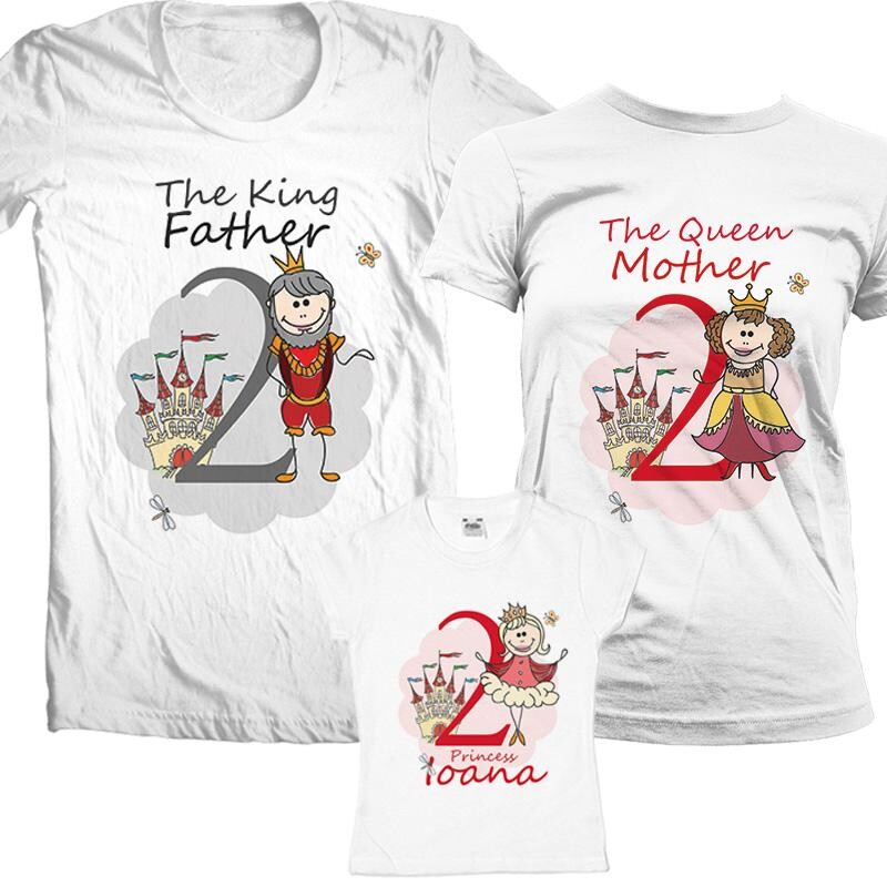 Set personalizat pentru familia de 3 persoane cu uo sarbatorita Tricourile personalizate pentru aniversare se pot folosi pentru sedinte foto sau pentru a adauga savoare unei petreceri aniversare.