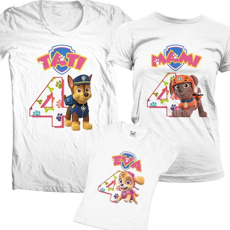 Set personalizat pentru familia de 3 persoane cu o sarbatorita cu tema Patrula Catelusilor . Tricourile personalizate pentru aniversare se pot folosi pentru sedinte foto sau pentru a adauga savoare unei petreceri aniversare.