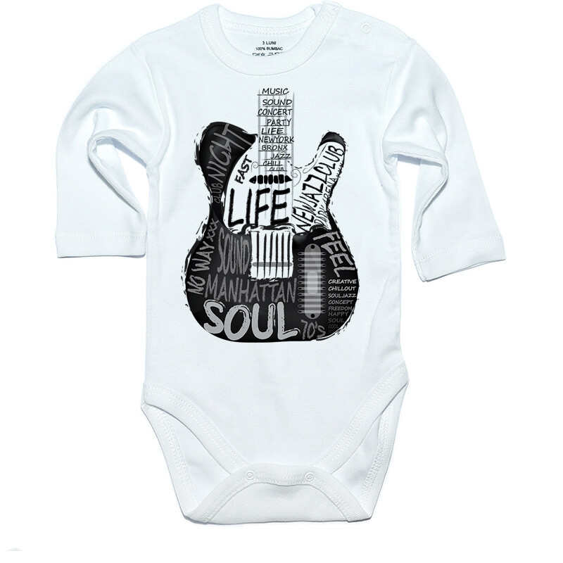 Tricou sau body personalizat pentru copii, cu imprimeu rock, cadoul perfect pentru o petrecere aniversara, cu desen imprimat digital, direct in tesatura tricoului, cu vopsele pe baza de apa, fara potential alergen. Toate produsele sunt din bumbac 100%.  Body are capse pe umar si intre picioare, se livreaza cu maneca scurta sau maneca lunga, in functie de optiunea Dvs. Tricourile s[...]