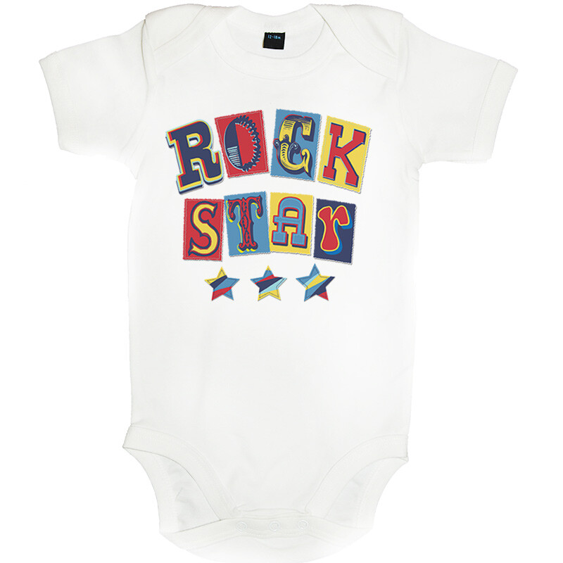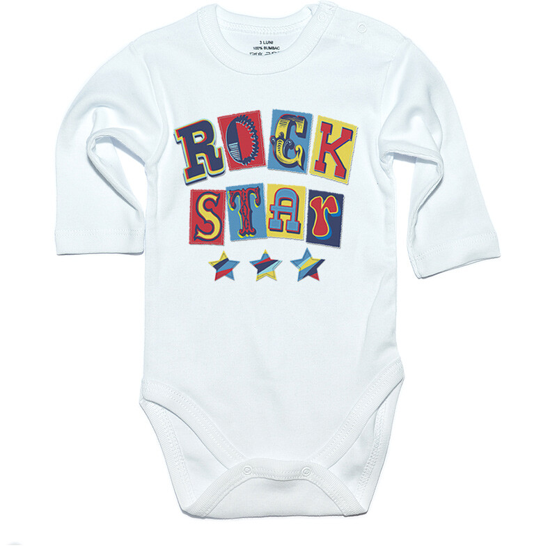 Tricou sau body personalizat pentru copii, cu imprimeu rock, cadoul perfect pentru o petrecere aniversara, cu desen imprimat digital, direct in tesatura tricoului, cu vopsele pe baza de apa, fara potential alergen. Toate produsele sunt din bumbac 100%.